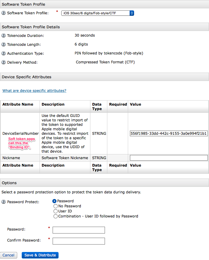 Unlike hardware tokens, software tokens need to be configured before they can be used. The procedure for distributing this configuration file varies depending on the type of software token, user requirements/preferences, and preferred method of distribution. Administrator guides detailing provisioning procedures for various soft tokens/software authenticators can be found at: https://www.sitelicensed.iastate.edu/software/securid/SoftwareAuthenticators/.